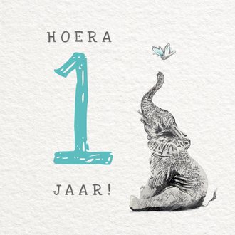 Verjaardag Illustratie Met Olifant Hoera 1 Kaartje2go
