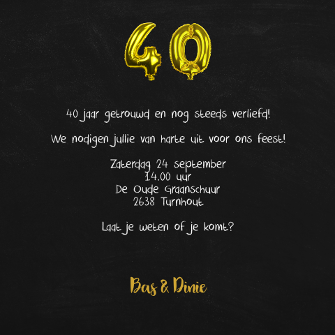 Uitnodiging 40 Jaar Huwelijk Met Foto S En Cijferballonnen