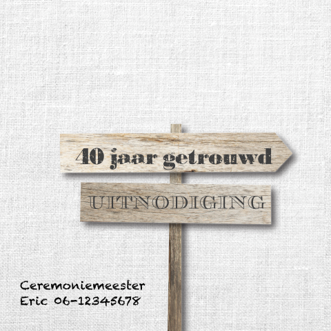 40 Jarig Huwelijksjubileum Uitnodiging Stof Houten Wegwijsbord