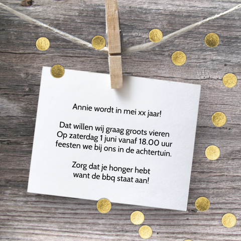 Uitnodiging Verjaardag Gouden Confetti Ballon Kaartje2go