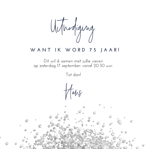 Uitnodiging Verjaardag 75 Jaar Zilveren Glitter