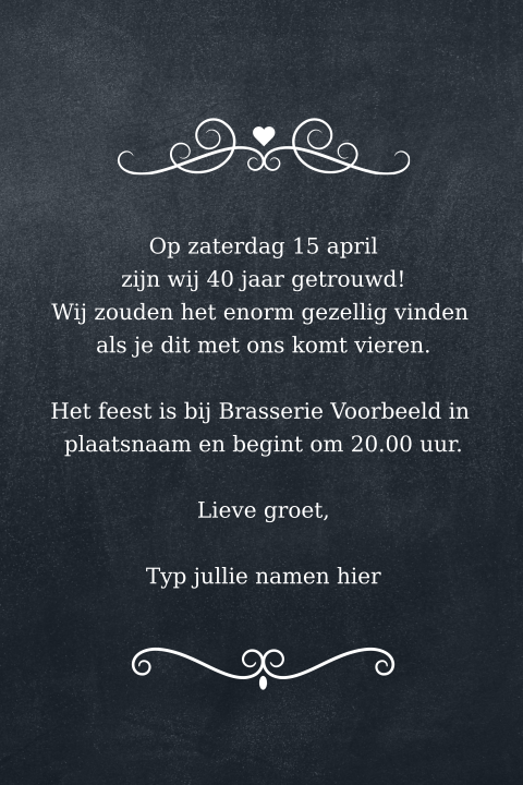 Uitnodiging 40 Jarig Huwelijk Wit Zwart Mint