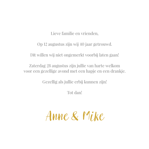- Eindelijk 40 jaar in dienst krijg je een vervelend tegeltje. We zien je graag in ons straatje. 40 jaar samen dat is niet niks Bedankt voor alles.