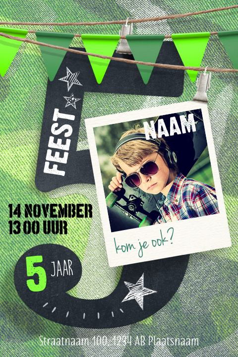 Stoere Uitnodiging 5 Jaar Jongen