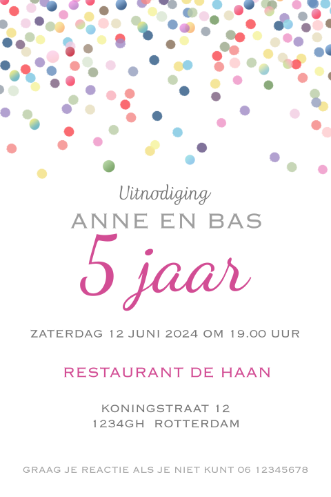 Enkele Confetti Uitnodiging 5 Jaar Getrouwd