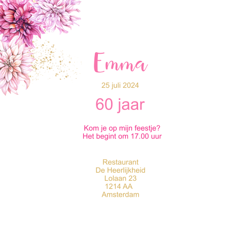 Stijlvolle Uitnodiging 60e Verjaardag Vrouw Met Foto En Dahlia Bloemen