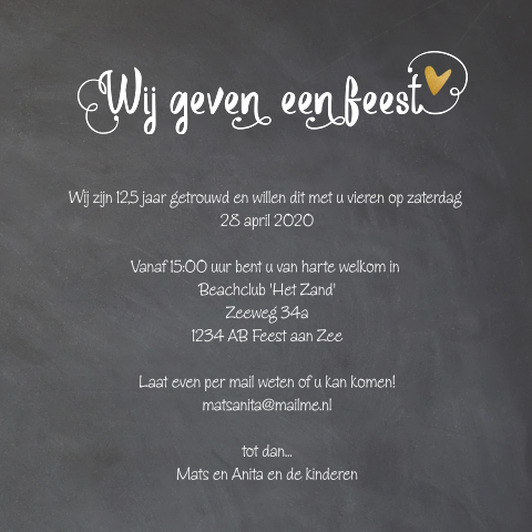 Uitnodiging 12 5 Jaar Getrouwd Krijtbord Strak Met Aanpasbare Tekst