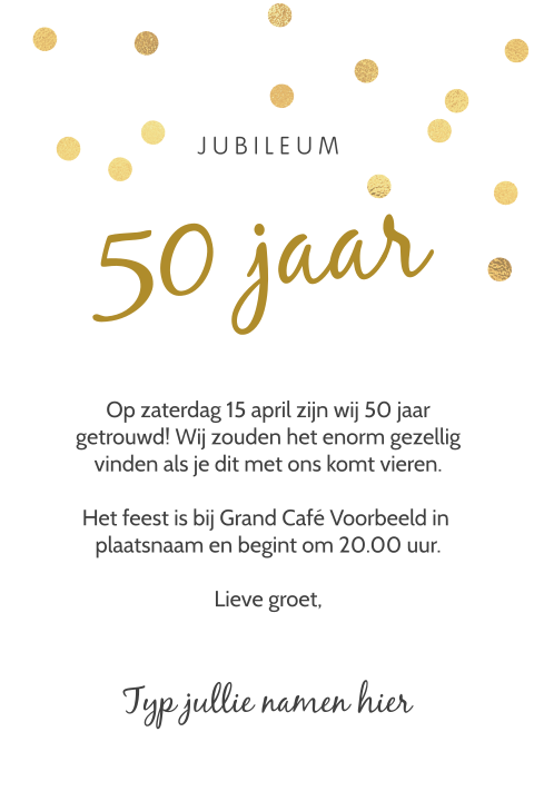 Uitnodiging Gouden Jubileum Met Leuke Lettertypes En Gouden Confetti