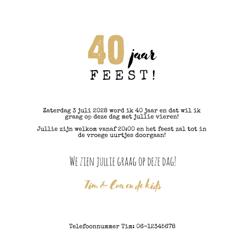 Uitnodiging Verjaardag 40 Jaar Goudlook Jaartal