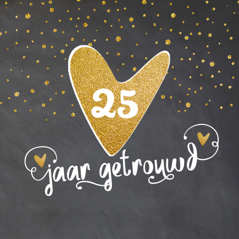 Jubileumkaart 25 Jaar Huwelijk Met Glitter Hartjes Op Krijtbord