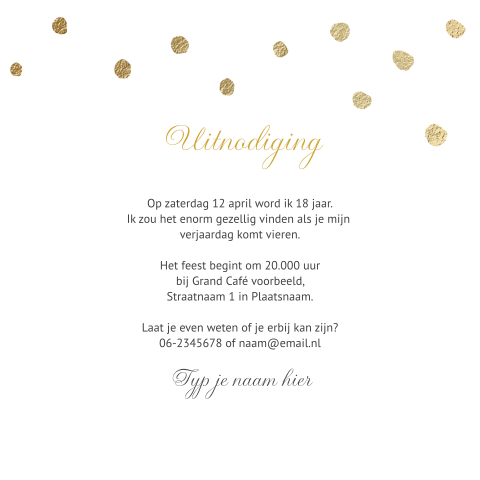 Mooie Uitnodigingskaart Verjaardag 18 Jaar Donker Blauw Goud