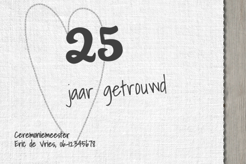 Houten Uitnodigingskaart 25 Jarig Huwelijk Met Getekend Hart
