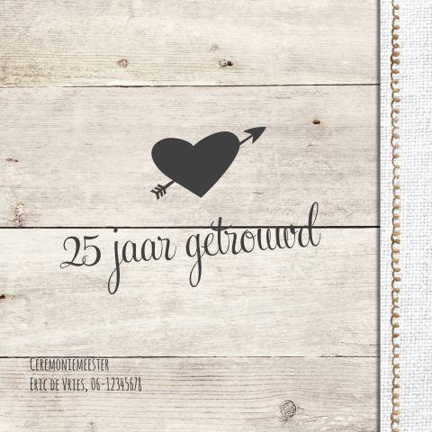 Sloophout Uitnodiging 25 Jarig Huwelijk Hartje Met Pijl
