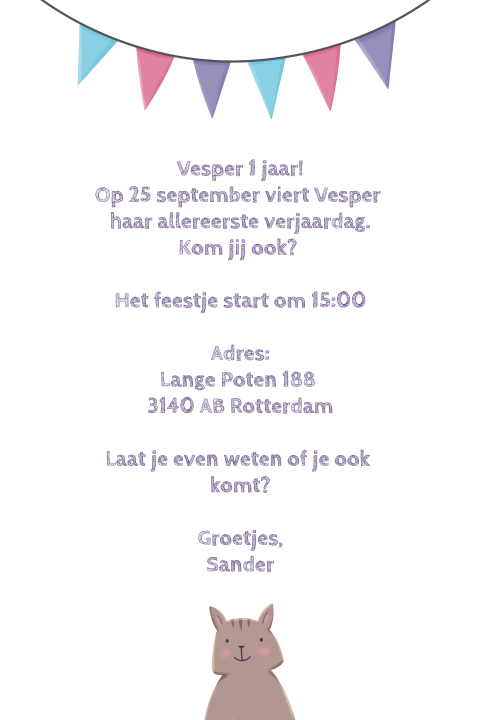 Vrolijke Uitnodiging Eerste Verjaardag Met Letterslinger