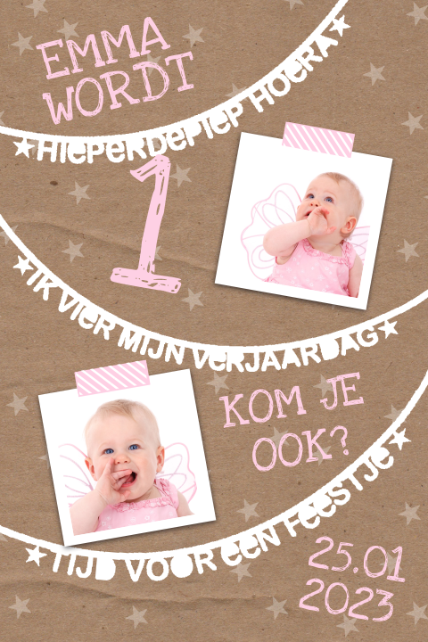 Uitnodiging Verjaardag 1 Jaar Meisje Kaartje2go
