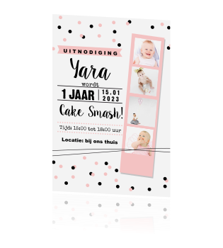 Uitnodiging Eerste Verjaardag Meisje Stippen Kaartje2go