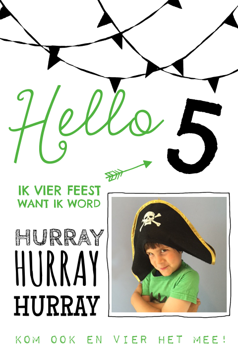 Uitnodiging Kinderfeestje 4e Verjaardag Zwart Wit Met Vlaggetjes