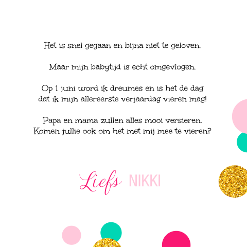 Uitnodiging Eerste Verjaardag Kinderfeestje 1 Jaar Hierbenik