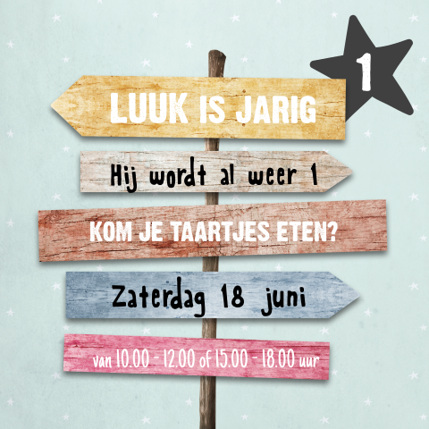Uitnodiging Verjaardag 1 Jaar Met Kleurrijke Wegwijzer