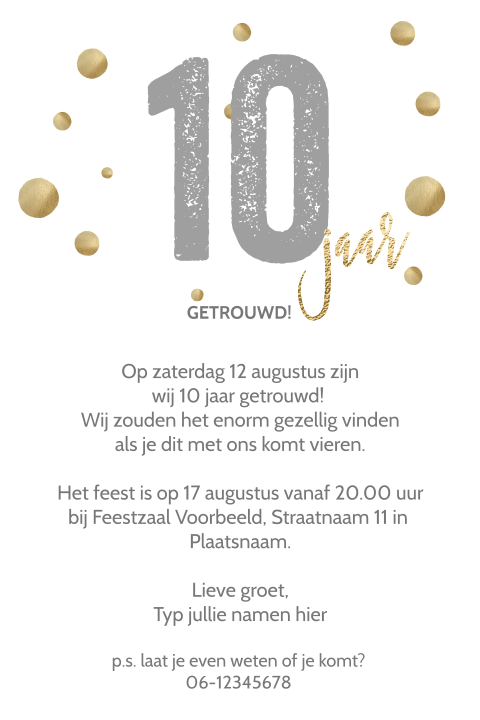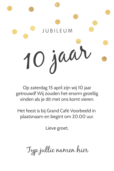 We hebben er zelfs een speciale kaartenmaker voor ontworpen. Ben je 10 jaar getrouwd. Lief en leed deel je al 10 jaar met elkaar.