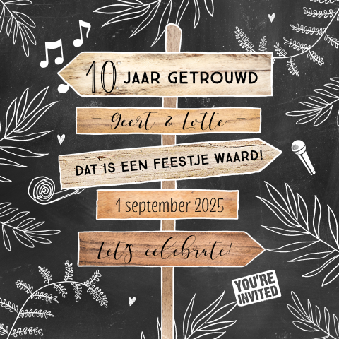Jubileumkaart 10 Jaar Samen Met Wegwijzer