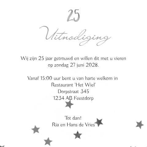 Uitnodiging 25 Jaar Getrouwd Met Sterren Confetti